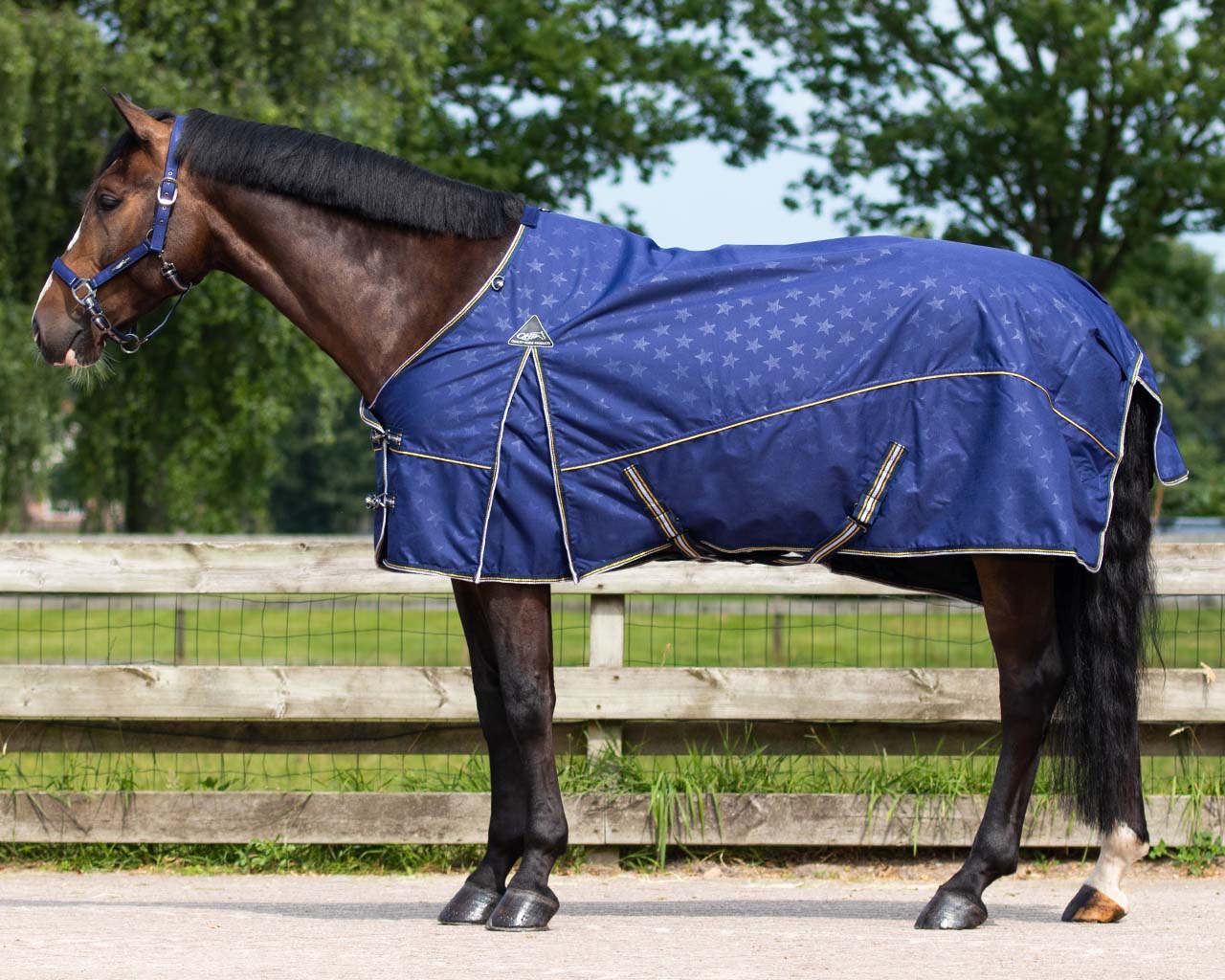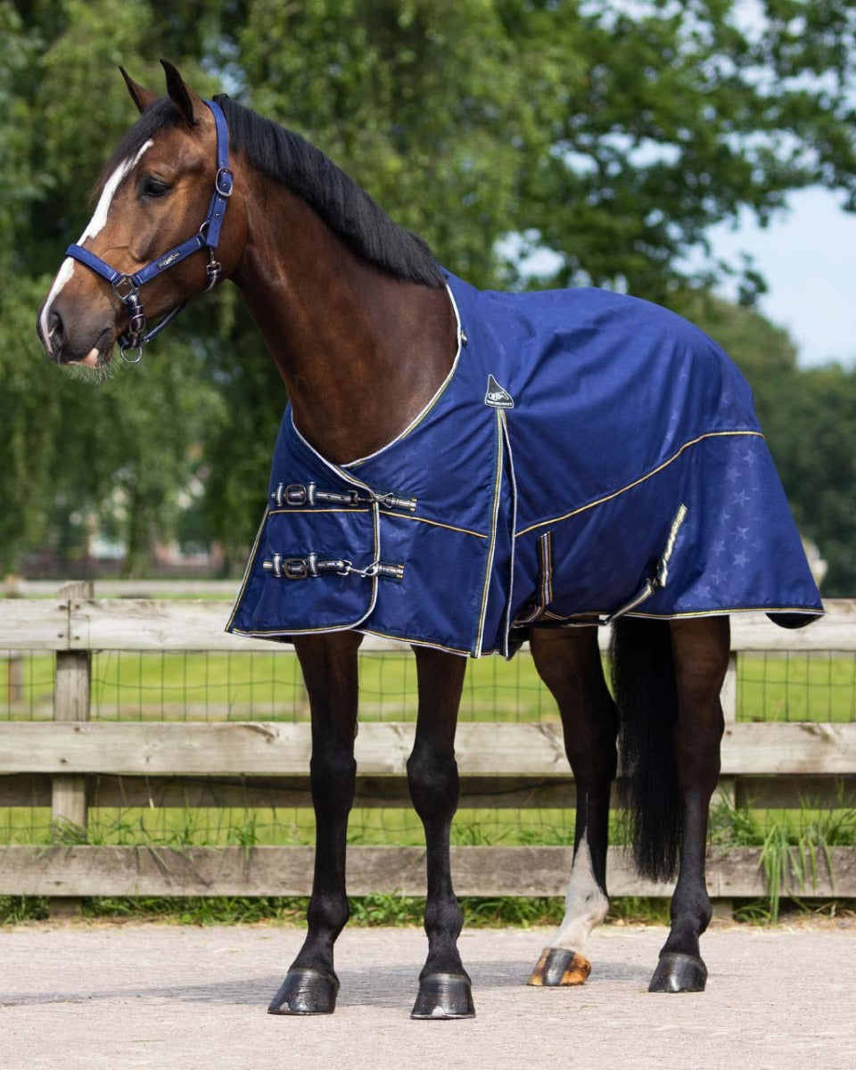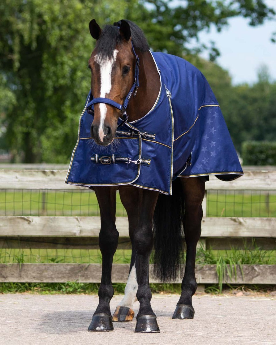 In sterk, wetterdicht en ademend hynstedeken sûnder foering dat hynders droech en beskerme hâldt tsjin 'e wyn. It deken sit goed en hat ringen om 'e nekke foar it befestigjen fan in losse kraach.
